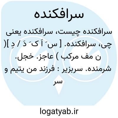 سرافکنده. [ س َ اَ ک َ دَ / دِ ]( ن مف مرکب ) عاجز. خجل. شرمنده. سربزیر: