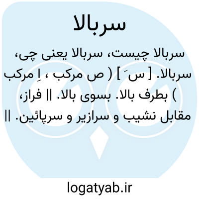 ۱ - ( صفت ) آنچه رو به بالا باشد مقابل سرازیر. ۲ - محلی که رو به بالا میرود سربالایی فراز مقابل سرازیر نشیب. ۳ - افزون متجاوز... هفتاد هزار بالش سر بالا آمد که بر ممالک برات نوشتند یا جواب سر بالا. پاسخ طفره آمیز. یا سربالا جواب دادن. جواب سرسری و طفره آمیز دادن.