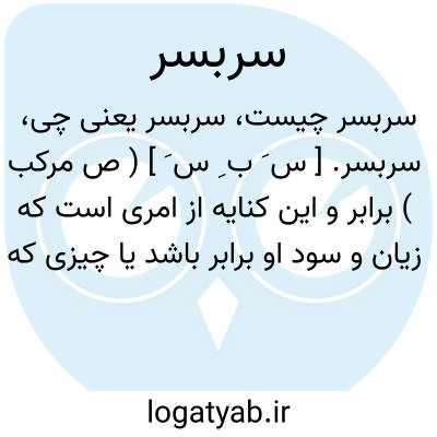 سربسر. [ س َ ب ِ س َ ] ( ص مرکب ) برابر و این کنایه از امری است که زیان و سود او برابر باشد یا چیزی که از یکی طلب داشته باشد مساوی آن باشد که به او دادنی باشد میگوید سربسر شدیم. ( آنندراج ):
