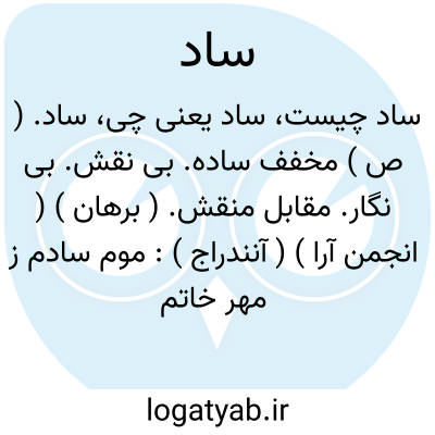 ساد. ( ص ) مخفف ساده. بی نقش. بی نگار. مقابل منقش. ( برهان ) ( انجمن آرا ) ( آنندراج ):