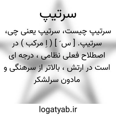 سرتیپ. [ س َ ] ( اِ مرکب ) در اصطلاح فعلی نظامی، درجه ای است در ارتش، بالاتر از سرهنگی و مادون سرلشکری. دارنده این درجه در شمار امراء ارتش است. فرمانده تیپ. فرمانده قسمتی از سربازان:
