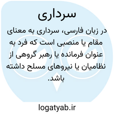 در زبان فارسی، سرداری به معنای مقام یا منصبی است که فرد به عنوان فرمانده یا رهبر گروهی از نظامیان یا نیروهای مسلح داشته باشد. این واژه ریشه در کلمه «سردار» دارد و به کسی اطلاق می‌شود که مسئولیت هدایت و رهبری نیروها را بر عهده دارد. به طور تاریخی، سرداران نقش بسیار مهمی در نبردها و امور حکومتی ایفا می‌کرده‌اند و تصمیمات آن‌ها می‌توانسته سرنوشت یک کشور یا منطقه را تحت تأثیر قرار دهد.