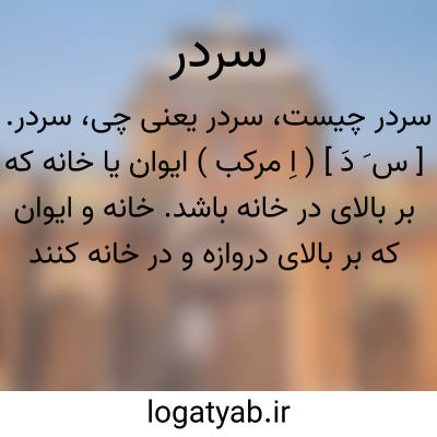 سردر. [ س َ دَ ] ( اِ مرکب ) ایوان یا خانه که بر بالای در خانه باشد. خانه و ایوان که بر بالای دروازه و در خانه کنند و در شهرها و قراء و خانه برپا کنند. || زینتی از بناء یا خانه که بر سر در خانه سازند. || بالای در. جلودر سر. آستانه خانه. ( یادداشت مؤلف ):