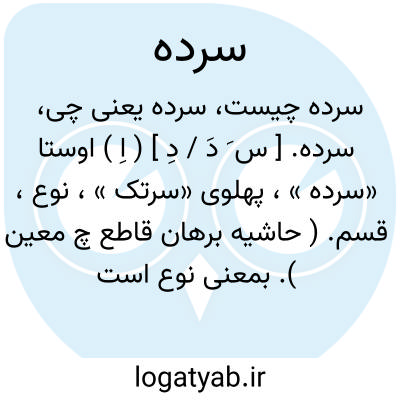 سرده. [ س َ دَ / دِ ] ( اِ ) اوستا «سرده »، پهلوی «سرتک »، نوع، قسم. ( حاشیه برهان قاطع چ معین ). بمعنی نوع است و انواع جمع آن است. ( برهان )( جهانگیری ) ( رشیدی ). || قدحی که بدان شراب خورند. ( برهان ). قدح شراب. ( آنندراج ):
