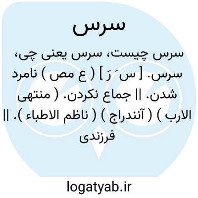 سرس. [ س َ رِ ] ( ع ص ) کسی که مردی نداشته باشد. ( منتهی الارب ) ( ناظم الاطباء ) ( آنندراج ). || کسی که جماع نکند. ( منتهی الارب ) ( آنندراج ). || کسی که اورا فرزندی نشود و گشنی که باردار نگرداند. ( منتهی الارب ) ( آنندراج ) ( ناظم الاطباء ). || سست. ( آنندراج ) ( ناظم الاطباء ). || مرد زیرک و هشیار. || نگهبان آن چیزی که در دست شخص باشد. ج، سراس. ( منتهی الارب ) ( آنندراج ) ( ناظم الاطباء ).
