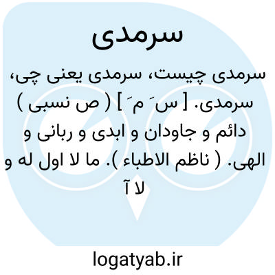 سرمدی. [ س َ م َ ] ( ص نسبی ) دائم و جاودان و ابدی و ربانی و الهی. ( ناظم الاطباء ). ما لا اول له و لا آخر. ( تعریفات ). ازلی و ابدی: