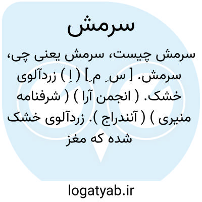 سرمش. [ س ِ م ِ] ( اِ ) زردآلوی خشک. ( انجمن آرا ) ( شرفنامه منیری ) ( آنندراج ). زردآلوی خشک شده که مغز بادام در درون آن کنند. ( برهان ). خوبانی. ( الفاظ الادویه ):