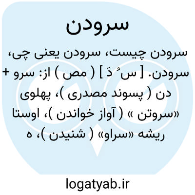 ( مصدر ) ( سرود سراید خواهد سرود بسرا ( ی ) سراینده سروده سرایش ) ۱ - آواز خواندن تغنی کردن سراییدن. ۲ - ساختن سرود و شعر.