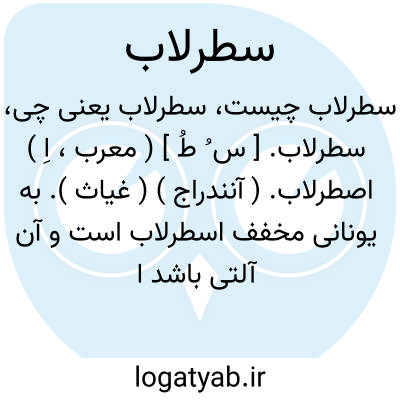 سطرلاب. [ س ُ طُ ] ( معرب، اِ ) اصطرلاب. ( آنندراج ) ( غیاث ). به یونانی مخفف اسطرلاب است و آن آلتی باشد از برنج که بدان ارتفاع آفتاب گیرند. ( برهان ):
