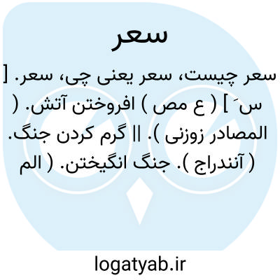 سعر. [ س ُ ] ( ع اِمص ) گرمی آتش. || گرسنگی یا سختی گرسنگی. ( منتهی الارب ) ( آنندراج ) ( از اقرب الموارد ). || سخت آزمندی گوشت. || نقل کردن علتی از صاحب خود بدیگری. ( منتهی الارب ) ( آنندراج ). || یاری گری. ( منتهی الارب ).