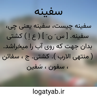 سفینه. [ س َ ن َ ] ( ع اِ ) کشتی بدان جهت که روی آب را میخراشد. ( منتهی الارب ). کشتی. ج، سفائن، سفون، سَفین، سُفُن. ( آنندراج ) ( ترجمان القرآن ترتیب عادل بن علی ). کشتی دریا. ( غیاث ) ( دهار ):