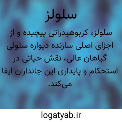 (س لُ لُ ) [ فر. ] (اِ. ) جسمی است جامد، بی بو، بی طعم و سفید رنگ، در آب و الکل حل نمی شود،به طور طبیعی در سلول - های گیاهان وجود دارد که مهم ترین عنصر ساختمانِ آن هاست.