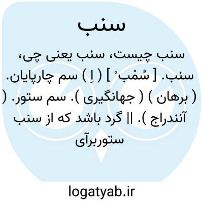 سنب. [ سُمْب ْ ] ( اِ ) سم چارپایان. ( برهان ) ( جهانگیری ). سم ستور. ( آنندراج ). || گرد باشد که از سنب ستوربرآید. ( تفسر ابوالفتوح ). || پای که به عربی رِجل خوانند. ( برهان ) ( جهانگیری ) ( فرهنگ رشیدی ) و ( آنندراج ). پای. رِجل. ( ناظم الاطباء ):