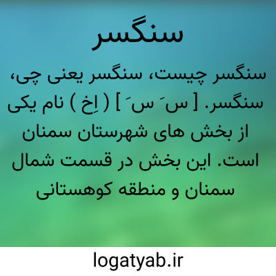 سنگسر. [ س َ س َ ] ( اِخ ) نام یکی از بخش های شهرستان سمنان است. این بخش در قسمت شمال سمنان و منطقه کوهستانی دره های جنوب سلسله جبال البرز واقع است. هوای آن سردسیر است آب آن از چشمه سارهای کوهستانی تأمین میشود. محصول عمده آن میوه و لبنیات است. این بخش از 6 آبادی سنگسر، شهمیرزاد، ده صوفیان، درجزین، طالب آباد، زیارت مشهور به امام زاده قاسم و 63 مزرعه و چشمه سار دیگر تشکیل میشود. جمعیت آن در حدود 24هزار تن است. راه شوسه از سمنان به سنگسر و شهمیرزاد وجود دارد. ( از فرهنگ جغرافیائی ایران ج 3 ).