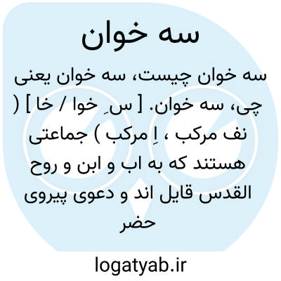 سه خوان. [ س ِ خوا / خا ] ( نف مرکب، اِ مرکب ) جماعتی هستند که به اب و ابن و روح القدس قایل اند و دعوی پیروی حضرت مسیح کنند وآنان را سه خوانا گویند. ( آنندراج ). قومی از نصاری که سه خدا میخوانند خدای عز و جل، عیسی و مریم علیهماالسلام. ( غیاث ). جماعتی را گویند که ایشان قایل بثالث ثلثه اند و آنها نوعی از نصاری باشند که ذات واجب را سه میدانند: خدا، مریم و عیسی. ( برهان ):