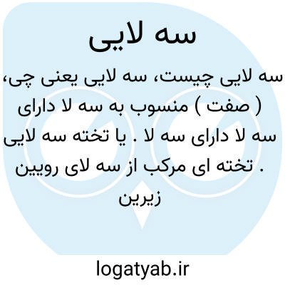 ( صفت ) منسوب به سه لا دارای سه لا دارای سه لا. یا تخته سه لایی. تخته ای مرکب از سه لای رویین زیرین و میانین که جمعا یک تخته نسبتا نازک را تشکیل دهند و معمو لا در ساختن روکش میز صندلی پاراوان و غیره به کار میرود.
