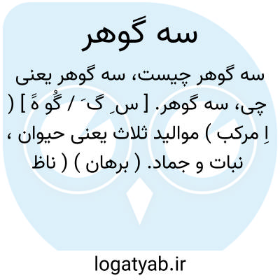 سه گوهر. [ س ِ گ َ / گُو هََ ] ( اِ مرکب ) موالید ثلاث یعنی حیوان، نبات و جماد. ( برهان ) ( ناظم الاطباء ).