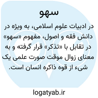 در ادبیات علوم اسلامی، به ویژه در دانش فقه و اصول، مفهوم «سهو» در تقابل با «تذکّر» قرار گرفته و به معنای زوال موقت صورت علمی یک شیء از قوه ذاکره انسان است. در این حالت، اگرچه شخص در لحظه، از آن امر خاص غافل می‌شود، اما صورت علمی آن هنوز در خزانه حافظه وی موجود است؛ از این رو، با کمترین تأمل یا با یک تذکر ساده، بلافاصله آن را به یاد می‌آورد. این ویژگی، سهو را از نسیان متمایز می‌سازد؛ زیرا در نسیان، صورت علمی موضوع به کلی از خزانه حافظه پاک می‌شود و بازگشت آن به ذهن، نیازمند یادگیری مجدد یا مراجعه به منابع بیرونی است و صِرف تأمل و تذکر برای یادآوری آن کافی نیست.