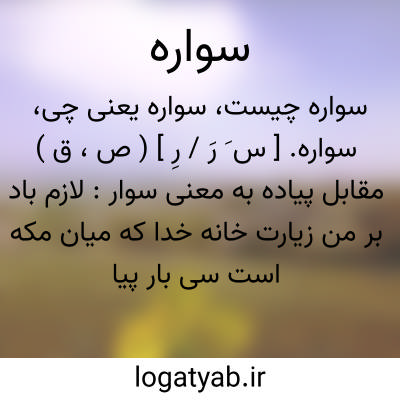 سواره. [ س َ رِ ] ( اِخ ) دهی است از دهستان چرام بخش کهکیلویه شهرستان بهبهان. دارای 180 تن سکنه. آب آن از چشمه. محصول آنجا غلات، پشم و لبنیات. شغل اهالی زراعت و حشم داری است. ( از فرهنگ جغرافیائی ایران ج 1 ).