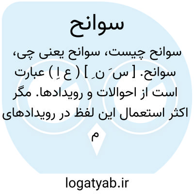 سوانح. [ س َ ن ِ ] ( ع اِ ) عبارت است از احوالات و رویدادها. مگر اکثر استعمال این لفظ در رویدادهای متوحش و ناپسندیده باشد. ج ِ سانحه. ( از غیاث اللغات ). اتفاقات. حوادث. اتفاقات ناگهانی و هر حادثه که ناگهانی روی دهد. رویدادهای متوحش و ناپسندیده. ( ناظم الاطباء ): در عوارض حاجات و سوانح مهمات... ( ترجمه تاریخ یمینی ). و دیگر چون عرصه ملک ایشان عریض و بسیط شد و سوانح مهمات نازل. ( جهانگشای جوینی ).