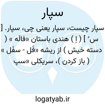 سپار. [ س ُ ] ( اِ ) هندی باستان «فالَه » ( دسته خیش ) از ریشه «فَل - سفَل » ( باز کردن )، سریکلی «سپور» ( خیش ). گاوآهن که زمین شکافند. ( لغت فرس 137 ) ( حاشیه برهان قاطع چ معین ). آهن جفت را گویند وآن آهنی باشد سرتیز که زمین به آن شیار کنند. ( برهان ). آهنی باشد سرتیز که زمین بدان شیار کنند و آن راآهن جفت خوانند. ( جهانگیری ) ( آنندراج ):