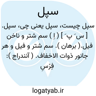 سپل. [ س َ پ َ ] ( اِ ) سم شتر و ناخن فیل.( برهان ). سم شتر و فیل و هر جانور ذوات الاخفاف. ( آنندراج ): فِرْسِن؛ سپل شتر. ( منتهی الارب ):