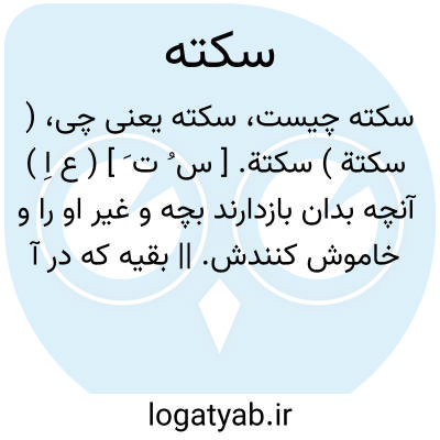 ( سکتة ) سکتة. [ س ُ ت َ ] ( ع اِ ) آنچه بدان بازدارند بچه و غیر او را و خاموش کنندش. || بقیه که در آوند بماند. ( منتهی الارب ) ( آنندراج ) ( از اقرب الموارد ).