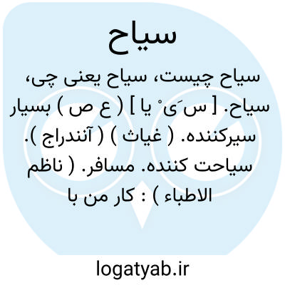 سیاح. [ س َی ْ یا ] ( ع ص ) بسیار سیرکننده. ( غیاث ) ( آنندراج ). سیاحت کننده. مسافر. ( ناظم الاطباء ): کار من با سیاحان و قاصدان پوشیده افتاد. ( تاریخ بیهقی ). سیاحی رسید از خوارزم و ملطفه ای خرد آورد. ( تاریخ بیهقی ).