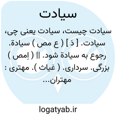 (دَ ) [ ع. سیادة ] ۱ - (مص ل. ) سروری، شرف یافتن. ۲ - (اِمص. ) بزرگی، سروری.