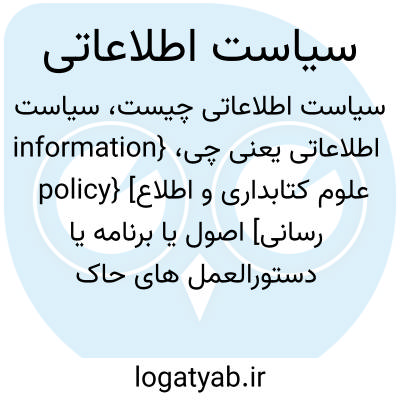{information policy} [علوم کتابداری و اطلاع رسانی] اصول یا برنامه یا دستورالعمل های حاکم بر حوزۀ منابع و فنّاوری اطلاعات که یک شرکت یا سازمان یا مؤسسه یا دولت اتخاذ می کند
