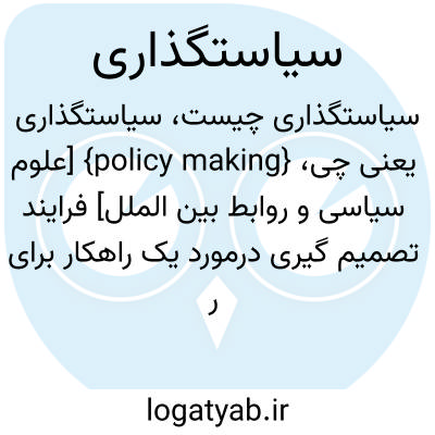 {policy making} [علوم سیاسی و روابط بین الملل] فرایند تصمیم گیری درمورد یک راهکار برای رسیدن به یک هدف مشخص