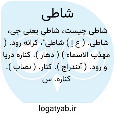شاطی. ( ع اِ ) شاطی ٔ، کرانه رود. ( مهذب الاسماء ) ( دهار ). کناره دریا و رود. ( آنندراج ). کنار. ( نصاب ). کناره. ساحل. ریف. عِدوَه. جِلهَه: