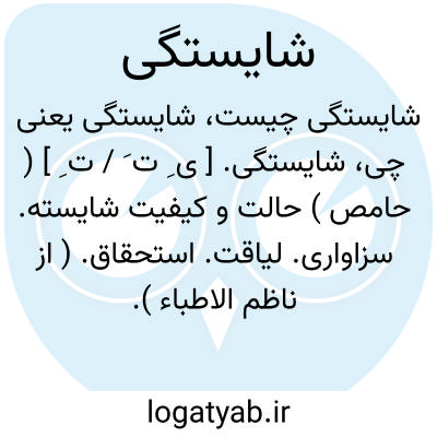 شایستگی. [ ی ِ ت َ / ت ِ ] ( حامص ) حالت و کیفیت شایسته. سزاواری. لیاقت. استحقاق. ( از ناظم الاطباء ). گویند: فلان کس شایستگی این کار را دارد، یاندارد؛ یعنی متناسب با آن هست یا نیست: