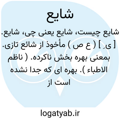 شایع. [ ی ِ ] ( ع ص ) مأخوذ از شائع تازی. بمعنی بهره بخش ناکرده. ( ناظم الاطباء ). بهره ای که جدا نشده است از حصه دیگران. مشاع. ( یادداشت مؤلف ). || ظاهر و فاش و آشکارا. منتشر و معروف. چیزی که همه کس آن را داند و بر وی مطلع باشد. ( ناظم الاطباء ): و حال علو همت و کمال بسطت ملک او از آن شایعتر است که در شرح آن به اشباع حاجت افتد. ( کلیله و دمنه ). و ذکر این معنی از این شایعترست. ( کلیله و دمنه ). و اجتهاد او در عالم شایع باشد. ( کلیله و دمنه ).... صیت سایر و ذکر شایع یابد. ( سندبادنامه ص 8 ). انعام او درباره اهل علوم و اصحاب هنر شایع و مستفیض. ( ترجمه تاریخ یمینی ص 206 ). رجوع به شائع شود.