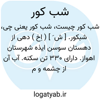 شبکور. [ ش َ ] ( اِخ ) دهی از دهستان سوسن ایذه شهرستان اهواز. دارای 330 تن سکنه. آب آن از چشمه و محصول آن غلات است. ( از فرهنگ جغرافیائی ایران ج 6 ).، شب کور. [ ش َ ] ( ص مرکب ) آنکه به شب هیچ نبیند. أعشی. کسی که در شب چشمش نبیند. ( فرهنگ نظام ) ( ناظم الاطباء ). رجوع به شب کوری شود. || ( اِ مرکب ) خفاش. شب پره.
