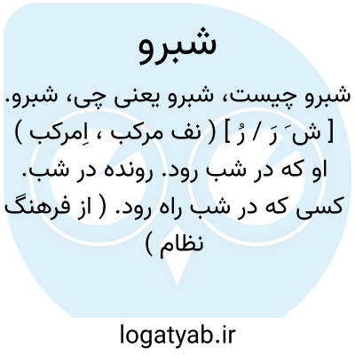 شبرو. [ ش َ رَ / رُ ] ( نف مرکب، اِمرکب ) او که در شب رود. رونده در شب. کسی که در شب راه رود. ( از فرهنگ نظام ). که هنگام تاریک شدن جهان پس از غروب خورشید در حرکت و رفتار آید: