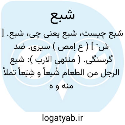 شبع. [ ش َ ] ( ع اِمص ) سیری. ضد گرسنگی. ( منتهی الارب ): شبع الرجل من الطعام شُبعاً و شِبَعاً تملأ منه و هوضد جاع؛ سیر شد از غذا و آن ضد گرسنه شد است. ( از اقرب الموارد ). || ( ص ) زمین سرسبز: هذا وادقد شبعت غنمه. ( از اقرب الموارد )؛ یعنی بیابانی است که گوسفندانش سیر شدند. کنایه از بیابان سبز است.