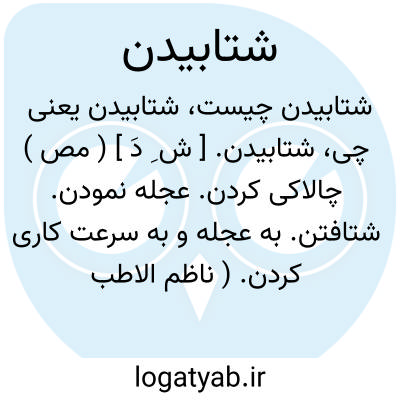 ( مصدر ) ( شتافت شتابد خواهد شتافت بشتاب شتابنده شتابان شتافته ) ۱ - عجله کردن. ۲ - تند رفتن به عجله حرکت کردن.