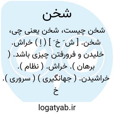 شخن. [ ش َ خ َ ] ( اِ ) خراش. خلیدن و فرورفتن چیزی باشد. ( برهان ). خراش. ( نظام ). خراشیدن. ( جهانگیری ) ( سروری ). خراشیدگی. ( رشیدی ):