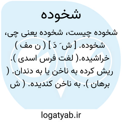 شخوده. [ ش َ دَ ] ( ن مف ) خراشیده.( لغت فرس اسدی ). ریش کرده به ناخن یا به دندان. ( برهان ). به ناخن کندیده. ( شرفنامه منیری ):