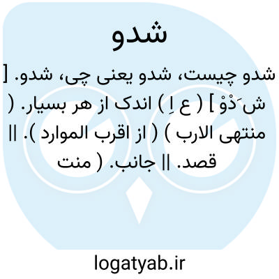 شدو. [ ش َدْوْ ] ( ع اِ ) اندک از هر بسیار. ( منتهی الارب ) ( از اقرب الموارد ). || قصد. || جانب. ( منتهی الارب ) ( ناظم الاطباء ).