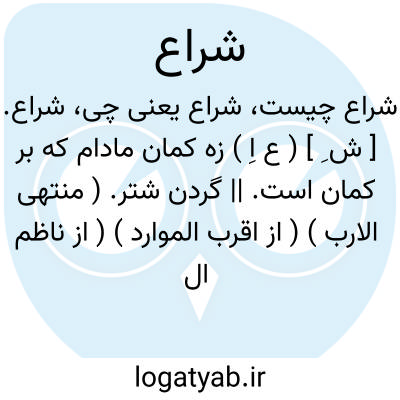 ( اسم ) ۱ - بادبان کشتی. ۲ - خیمه شامیانه. ۳ - سایبان. ۴ - زه کمان که مادام بر کمان است. ۵ - گردن شتر جمع: اشرعه شرع.