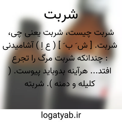 (شَ بَ ) [ ع. شربة ] (اِ. ) در فارسی: ۱ - نوشیدنی. ۲ - آب آمیخته با شکر یا عصارة میوه.