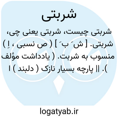 شربتی. [ ش َ ب َ ] ( ص نسبی، اِ ) منسوب به شربت. ( یادداشت مؤلف ). || پارچه بسیار نازک ( دلبند ) از آن یشماق سازند. ( دیوان البسه نظام قاری ص 201 ). ریسمانی باشد بغایت باریک و نازک و لطیف. ( برهان ). || جامه ابریشمی باریک و لطیف و نازک. ( غیاث اللغات ). || تار. نخ خیلی نازک. || رنگی که شبیه به رنگ شربت ( قرمز کم رنگ ) باشد، مثل پارچه شربتی و کاغذ شربتی. ( فرهنگ نظام ):