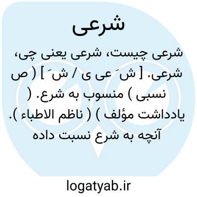 شرعی. [ ش َ عی ی / ش َ ] ( ص نسبی ) منسوب به شرع. ( یادداشت مؤلف ) ( ناظم الاطباء ). آنچه به شرع نسبت داده شود. ( از اقرب الموارد ): امور شرعی سرکار فیض آثار متعلق و مختص عالیجاه صدر خاصه است. ( تذکرةالملوک ص 2 ). مجملاً عزل و نصب مباشرین موقوفات... اگر شرعی باشد هیچیک از حکام شرع و صدور را مدخلیتی در آن نیست. ( تذکرةالملوک ص 3 ). || مشروع و حلال و موافق شرع. ( ناظم الاطباء ). مطابق احکام شرع. موافق دین. ( فرهنگ فارسی معین ). آنچه موافق شرع است. ( از اقرب الموارد ). || راست. || شلوار تنگ. ( ناظم الاطباء ).