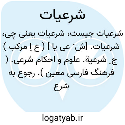شرعیات. [ش َ عی یا ] ( ع اِ مرکب ) ج ِ شرعیة. علوم و احکام شرعی. ( فرهنگ فارسی معین ). رجوع به شرعی و شرعیة شود.