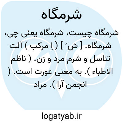 شرمگاه. [ ش َ ] ( اِ مرکب ) آلت تناسل و شرم مرد و زن. ( ناظم الاطباء ). به معنی عورت است. ( انجمن آرا ). مرادف شرمجای. ( آنندراج ). خربت. ( منتهی الارب ). معرنفط. ( منتهی الارب ). آنجا که آلت تناسل جای دارد. محل عورت مرد یا زن از قبل ودبر. عورت. قبل و دبر. شرم. فرج. نهانگاه. سوآت. هریک از دو قسمت پوشیدنی از پیش و پس اعم از مرد و زن: لیبدی لهما ما وری عنهما من سؤاتهما؛ تاآشکار گرداند بر ایشان آنچه پوشیده بود از نظر ایشان از شرمگاه ایشان. ( قرآن 20/7 ). ( یادداشت مؤلف ).