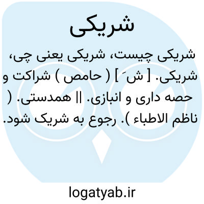 شریکی. [ ش َ ] ( حامص ) شراکت و حصه داری و انبازی. || همدستی. ( ناظم الاطباء ). رجوع به شریک شود.