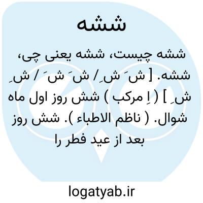 ششه. [ ش َ ش ِ/ ش َ ش َ / ش ِ ش ِ ] ( اِ مرکب ) شش روز اول ماه شوال. ( ناظم الاطباء ). شش روز بعد از عید فطر را گویند. ( ازبرهان ) ( آنندراج ) ( از انجمن آرا ). شش بندان. شش یندان. رجوع به شش یندان و شش بندان شود. || روزه داشتن در شش روز اول شوال. ( از برهان ) ( از آنندراج )( ناظم الاطباء ). روزه داشتن در شش روز بعد از عید رمضان که سنت است و آن را شش بندان گویند. ( از انجمن آرا ). || در خلخال سی و شش روز از بهار گذشته ( پنجم اردیبهشت ) را گویند که شش تا شش روز است و عوام معتقدند که در آن روز انقلابی در هوا پدید آید.