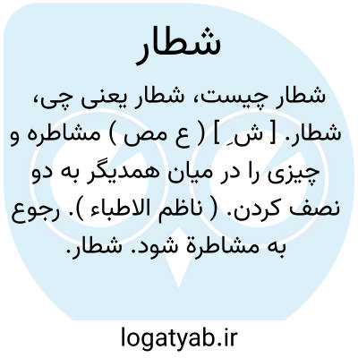 شطار. [ ش ِ ] ( ع مص ) مشاطره و چیزی را در میان همدیگر به دو نصف کردن. ( ناظم الاطباء ). رجوع به مشاطرة شود.